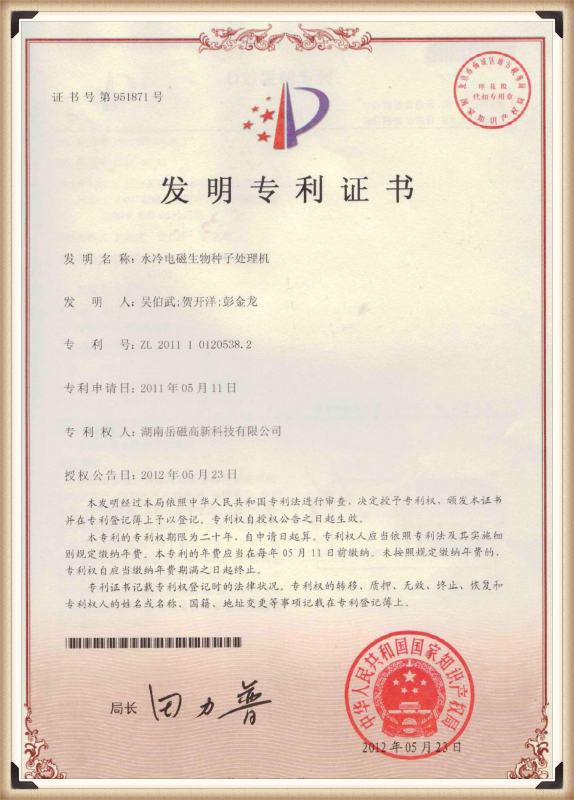上一篇:實用型發明專利水冷電磁生物種子處理機