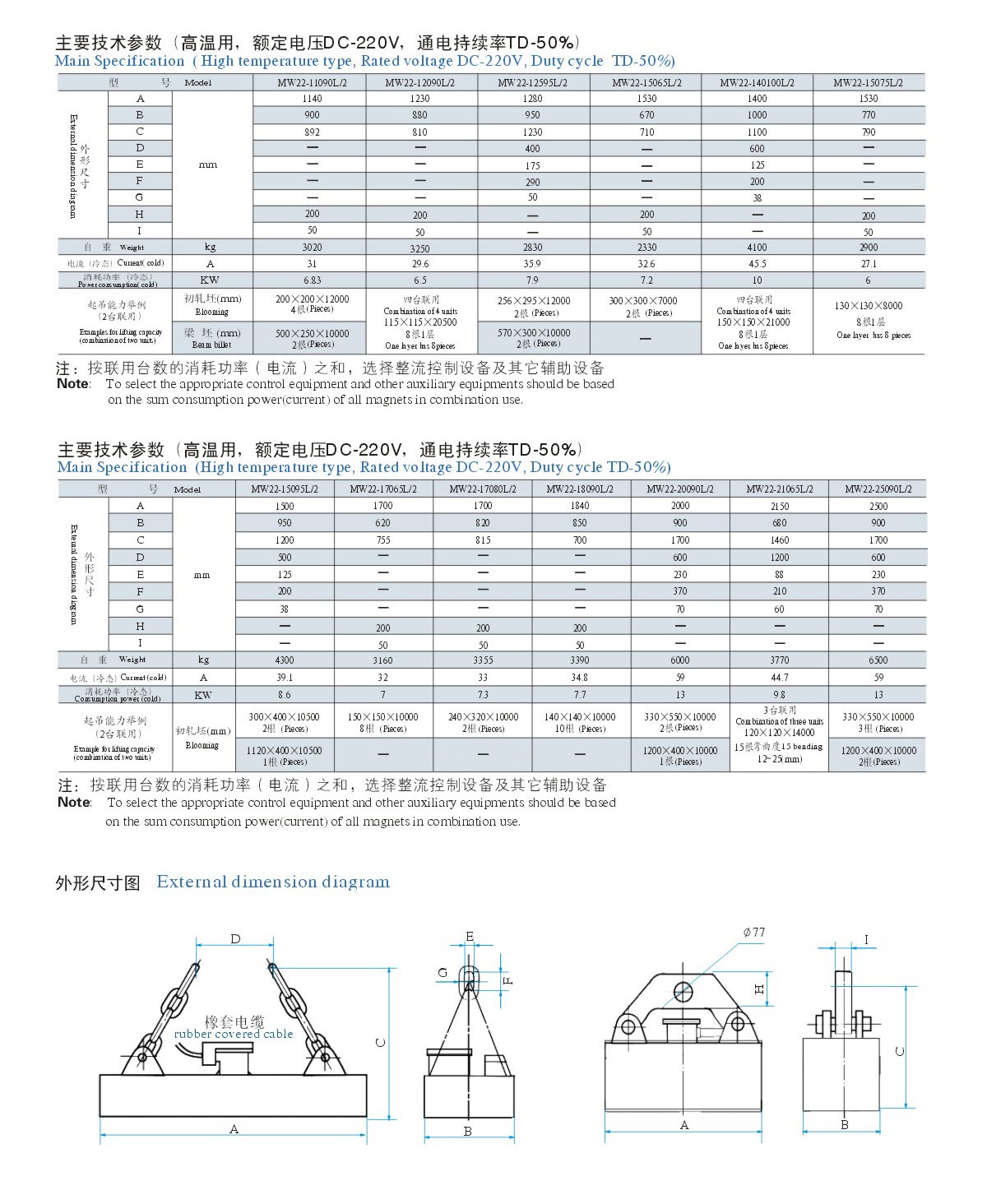 吊運鋼錠/鋼坯用電磁鐵MW22系列