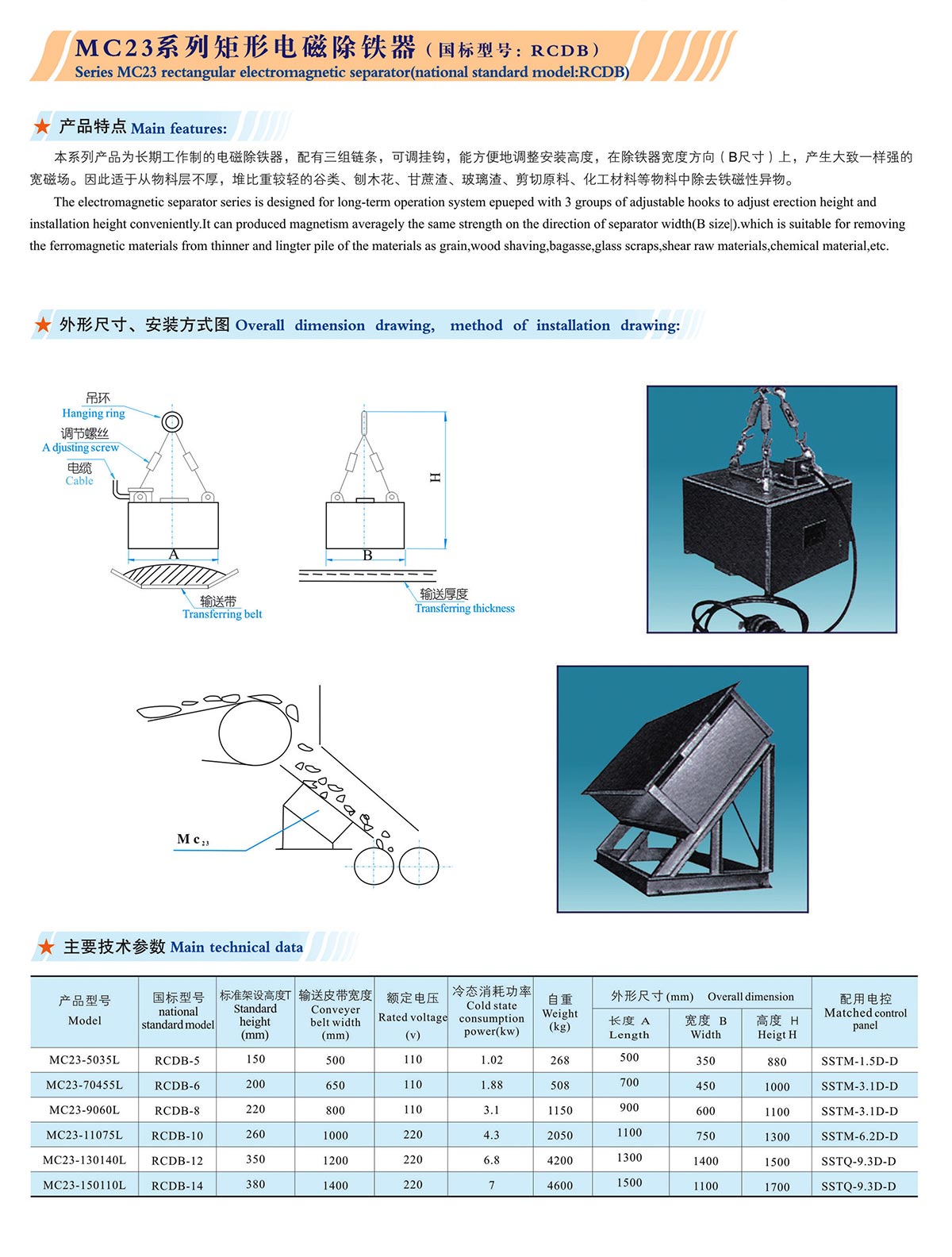 MC23系列矩形電磁除鐵器(國標(biāo)型號:RCDB)
