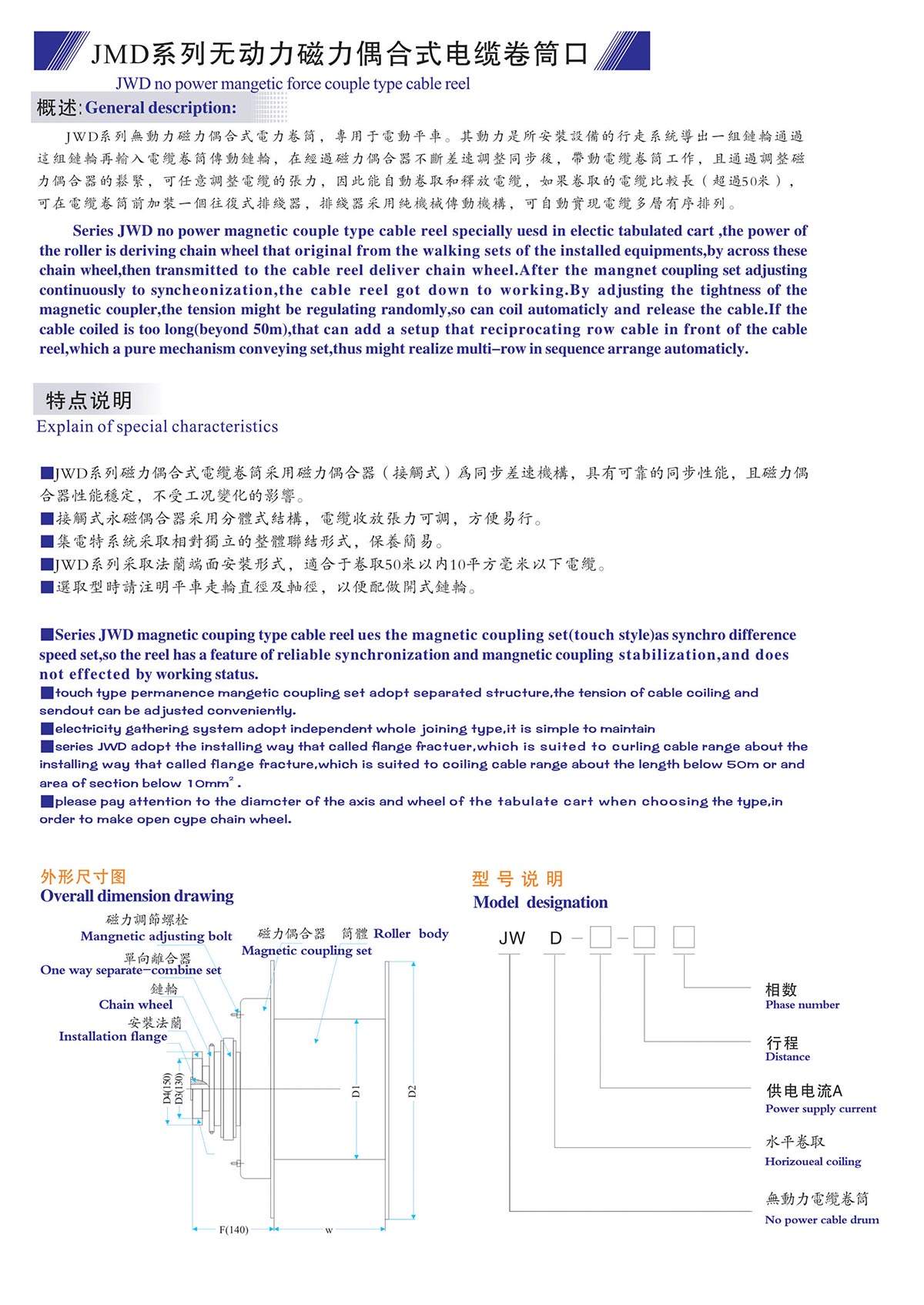 JMD系列無動力磁力偶合式電纜卷筒
