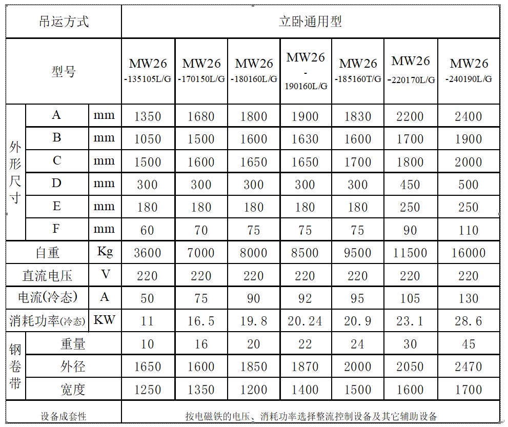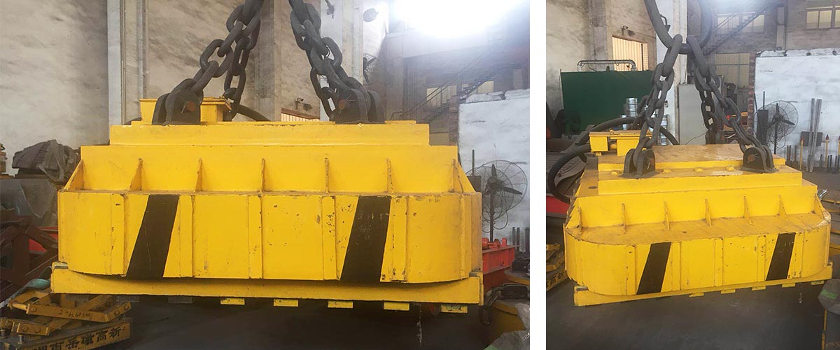 立臥通用型——電磁鐵能吸吊立卷,也能吸吊臥卷。電磁鐵采用活動磁極結構,并加工成內弧面外平面。既能適應立卷端面,又能適應臥卷的弧形側面。確保立卷、臥卷的安全吊運。