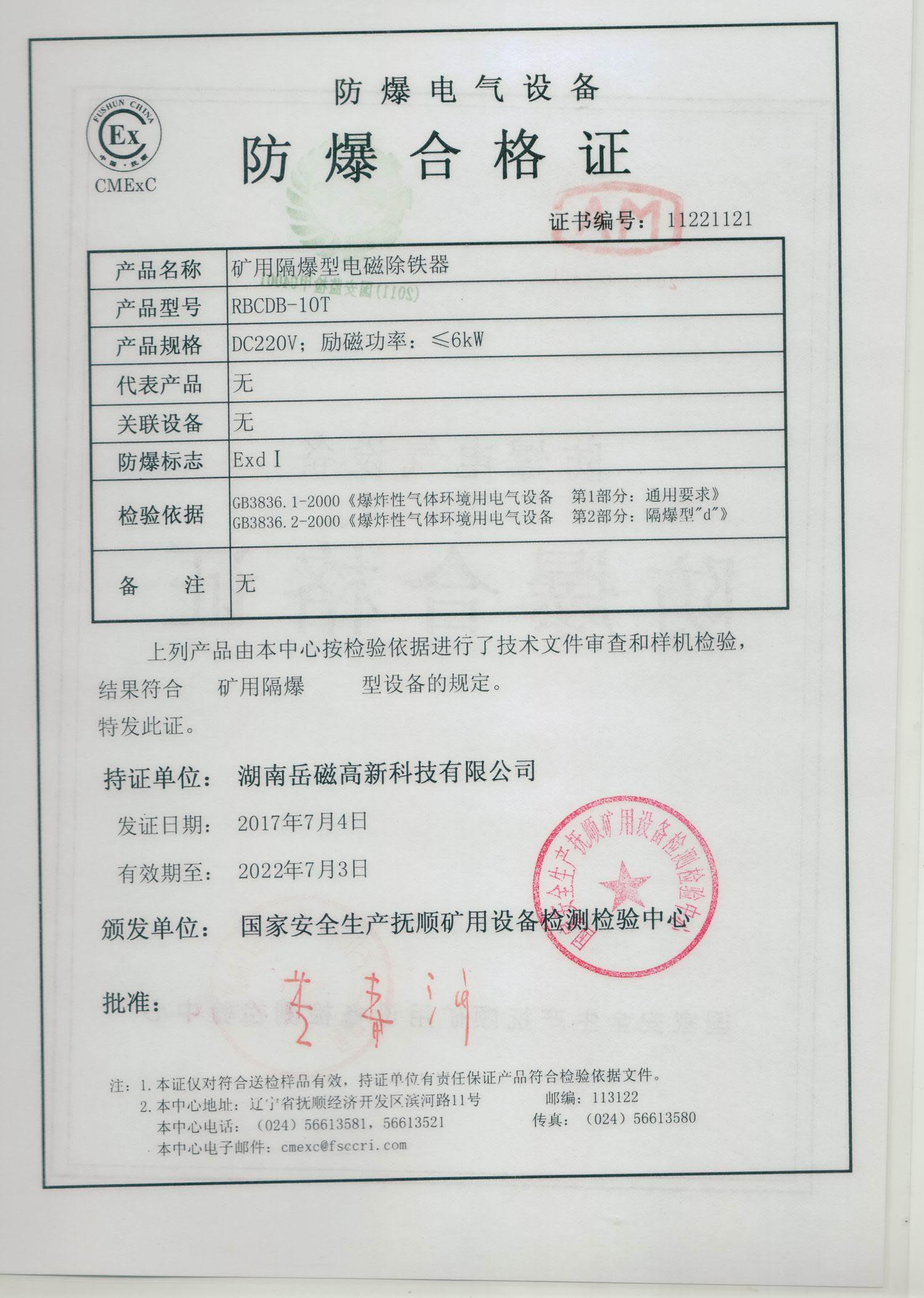 Mine explosion-proof electromagnetic iron remover